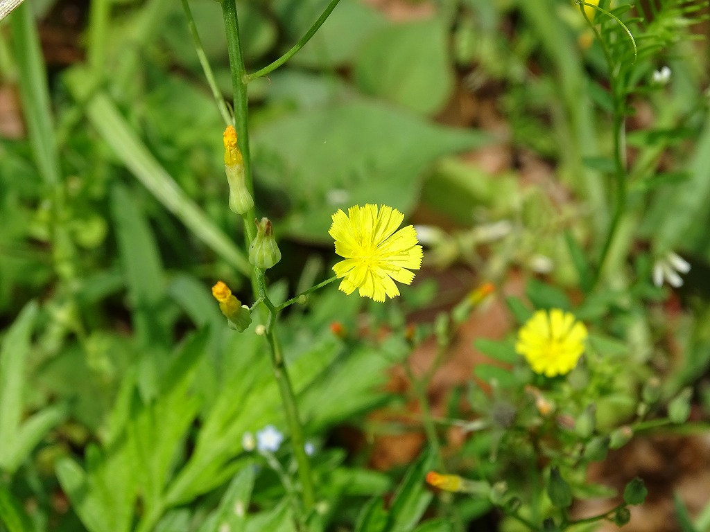オニタビラコ、コオニタビラコ、ヤブタビラコです。3種とも黄色くて似たような花を咲かせます。簡単な見分け方は、オニタビラコは立ち上がっている印象で、ヤブタビラコとコオニタビラコは地をはっている印象です。地をはうコオニタビラコとヤブタビラコは、コオニタビラコの花びらの数が少ないことで見分けることができます。