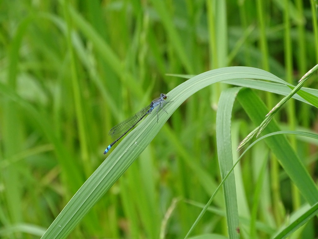 クロイトトンボは、江津湖ではよく見かけるイトトンボの仲間です。イトトンボの仲間の識別はとても難しいですが、クロイトトンボ(オス個体)は体に塩を吹いたように見えるため、比較的わかりやすいです。 他にもいろいろなイトトンボの仲間を観察できます。撮影できたらまた紹介したいと思います。