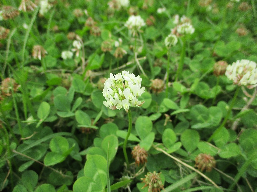 5月ごろになると公園の原っぱにシロツメクサが咲くようになります。