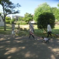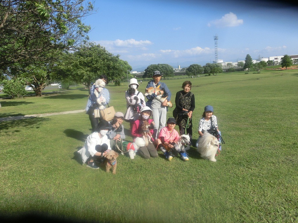 こんにちは、水前寺江津湖公園です。 初夏の暑い陽気となっています。今日は100回目となるえづワン隊を実施しました。ついに100回目となりましたね。今日は10名の隊員と8匹のワンちゃん隊員に参加していただきました。
