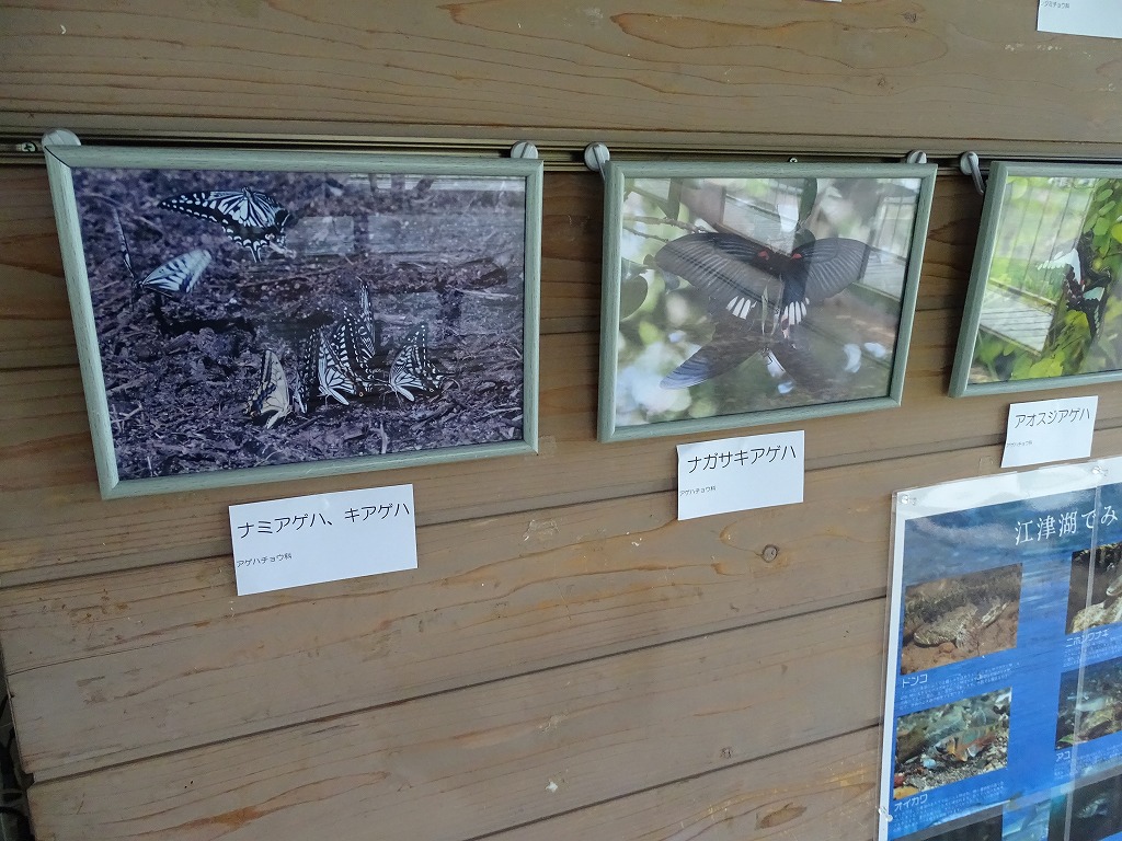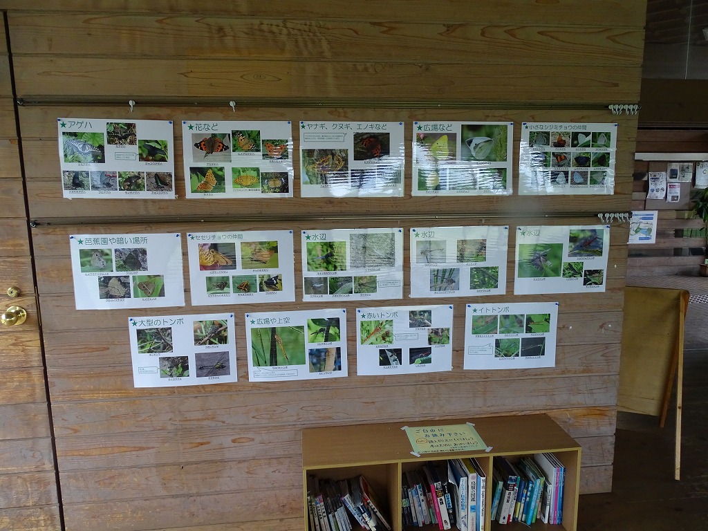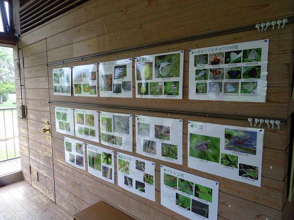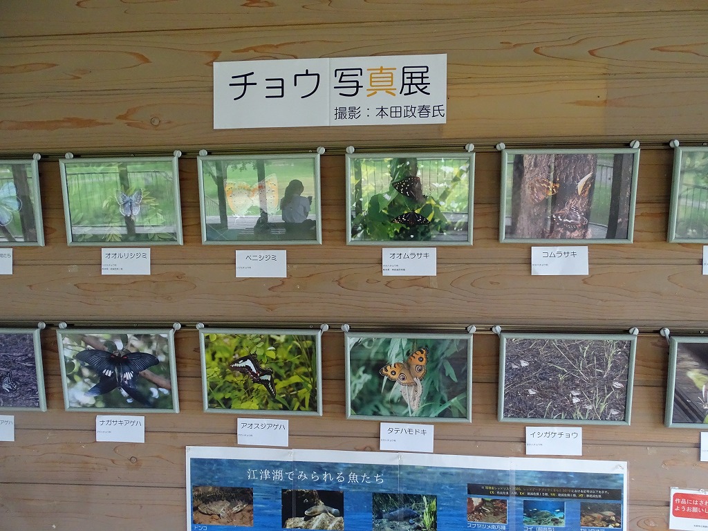 普段江津湖でよく目にするトンボやチョウなどの写真の他に、公園利用者の本田氏の協力で、県内で撮られたチョウの写真も展示しています。 これから雨の日も多くなると思います。雨の日は室内で休憩しながら写真を眺めてもらったらと思います。