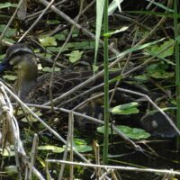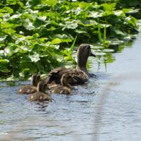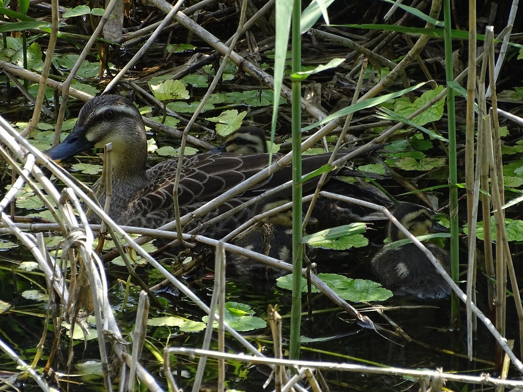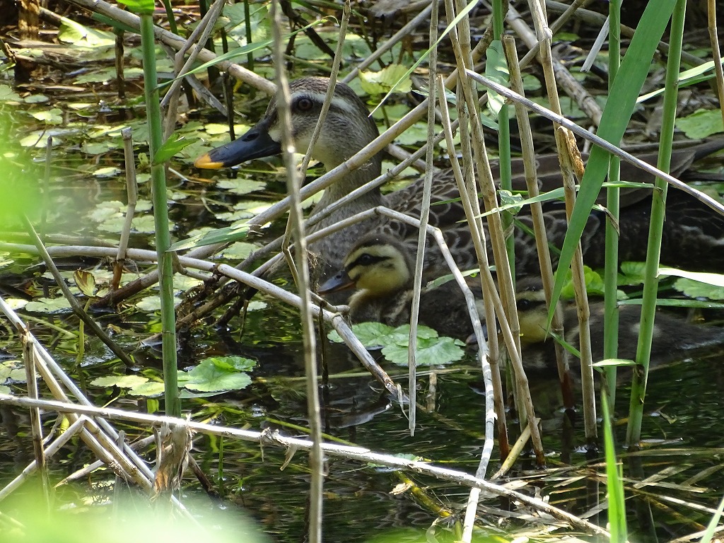 園内でカルガモ親子を見かけました。