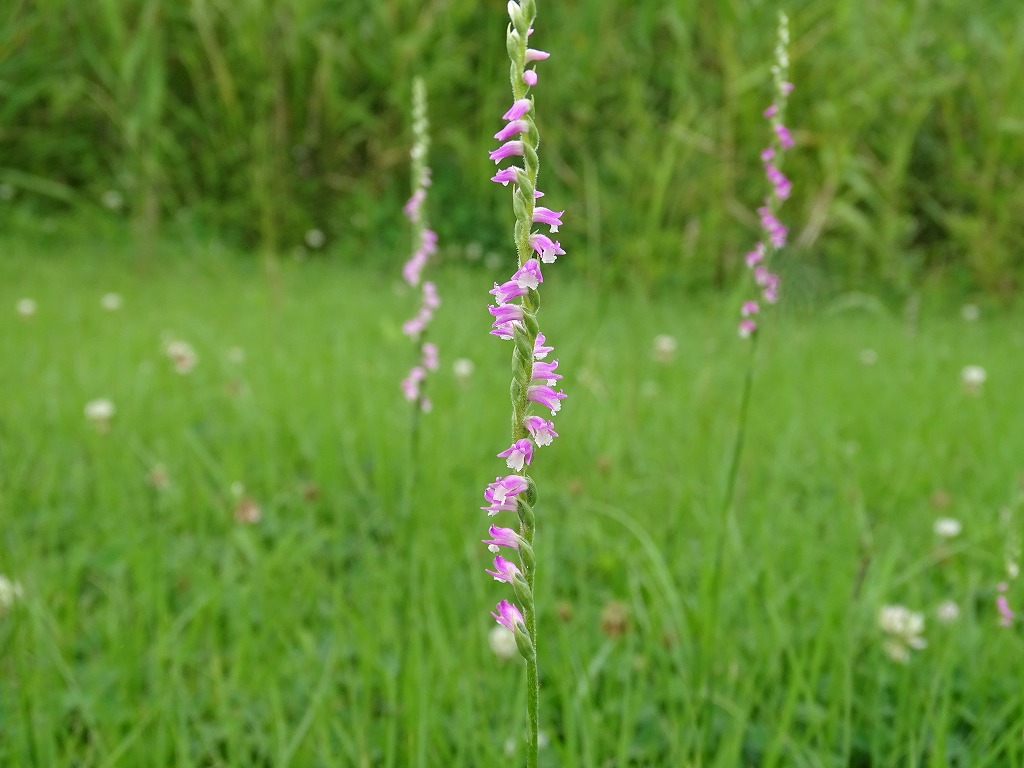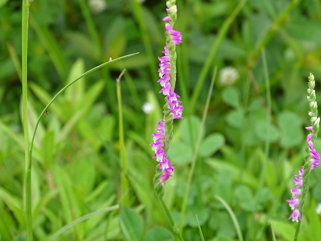 名前の通り花がねじ状にねじれて咲いています。右巻き、左巻き両方見ることができます。どちらが多いということもないようです。 ネジバナの花はおもしろいですね。芸術的です。今の時期によく見ることができますよ。