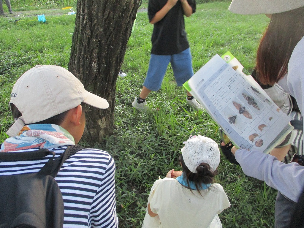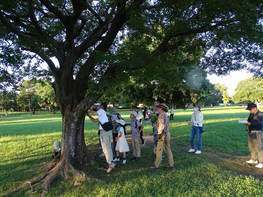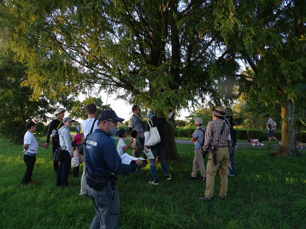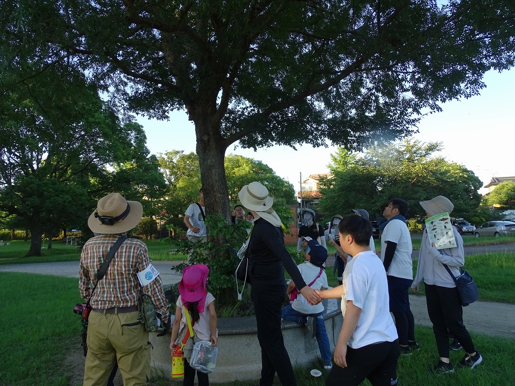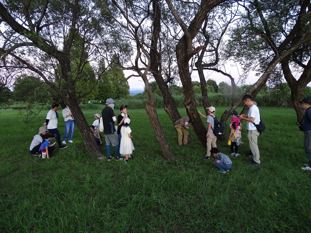 イベント開始時はまだ明るかったので、江津湖で夕方の時間に見ることのできる生きものを探してみました。クワガタやカメムシ、トンボの仲間などいろいろ観察できました。