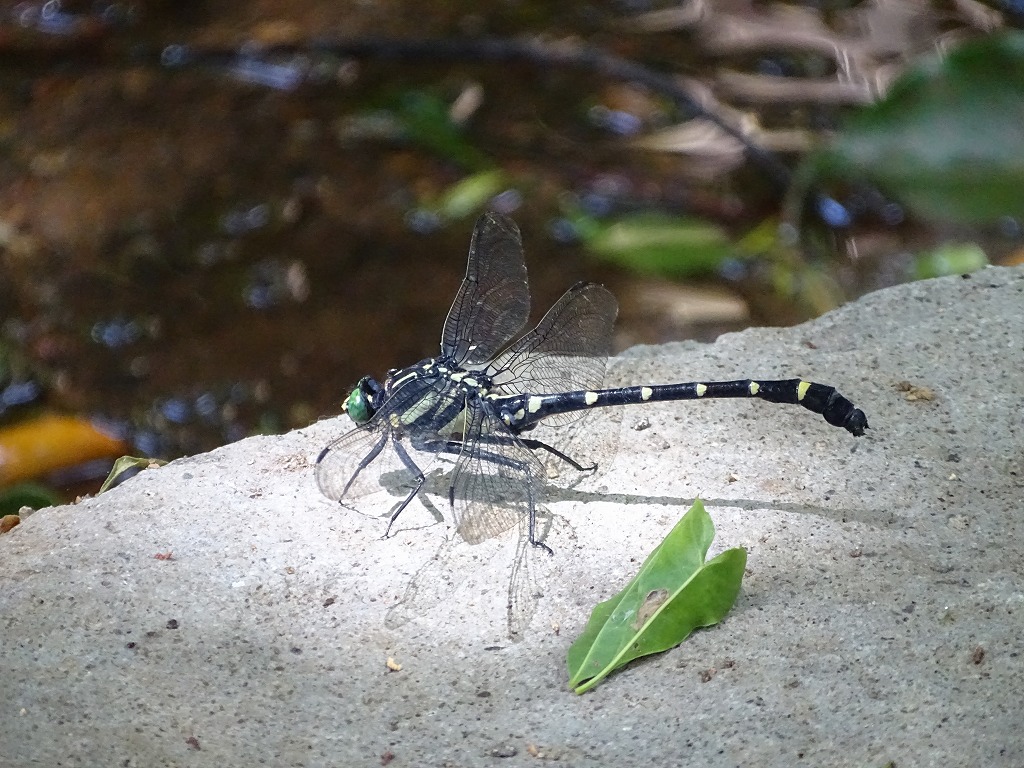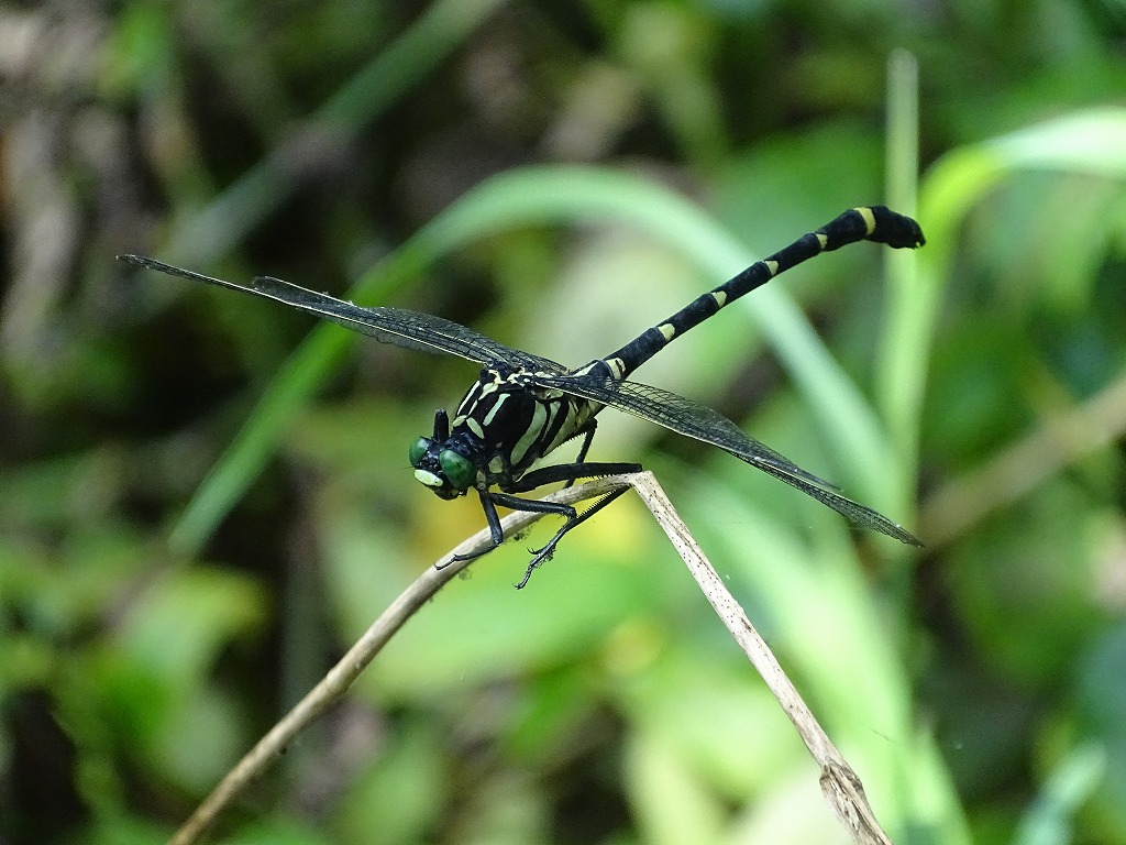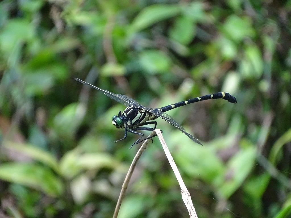 園内ではヤマサナエと入れ替わるように、コオニヤンマを見かけるようになりました。大型のサナエトンボの仲間です。