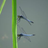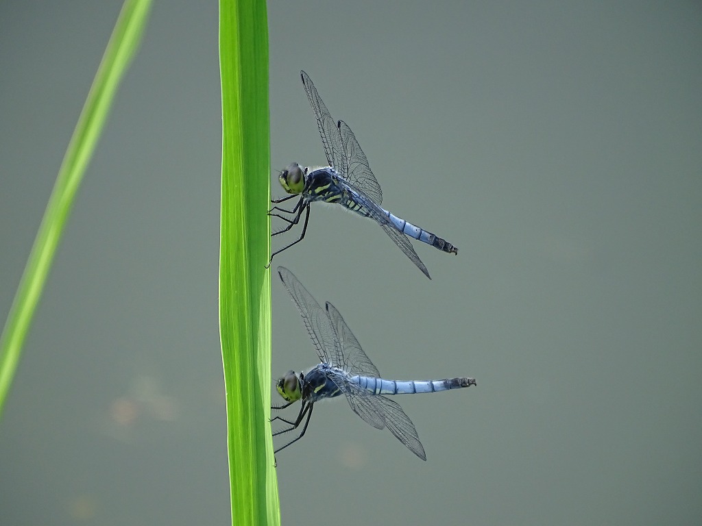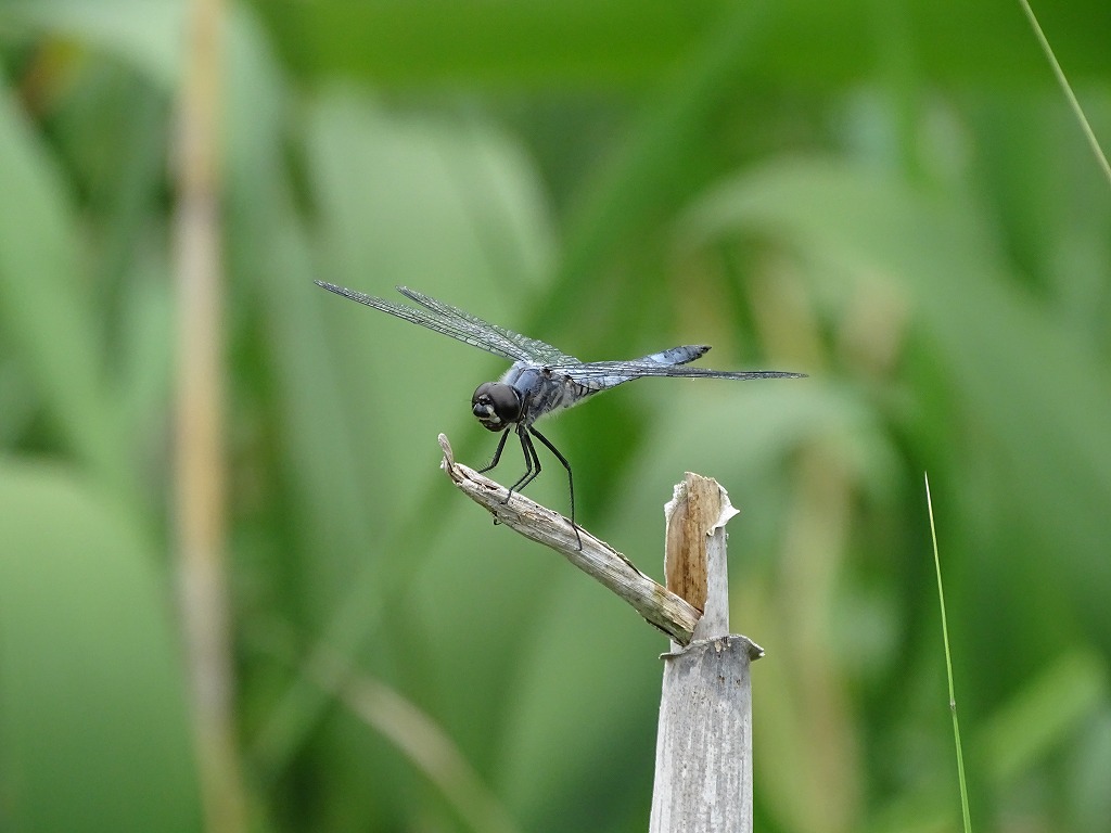 コフキトンボは、体が粉をふいたように白く見えることから名前が付けられています。シオカラトンボに似ていますが、コフキトンボの方が少し小柄ということで見分けがつきそうです。眼の色も違いますね。江津湖では、シオカラトンボより多く飛んでいる印象です。 これから涼しくなってくると、いろいろなトンボを観察できるようになると思います。