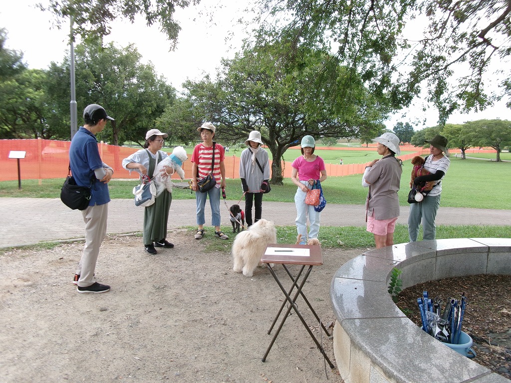 こんにちは、水前寺江津湖公園です。 まだまだ暑い日が続いています。昨日103回目のえづワン隊を実施しました。9名の隊員と8匹のワンちゃん隊員に集まってもらいました。