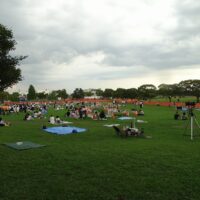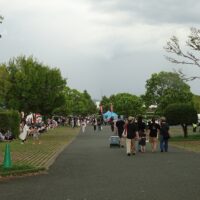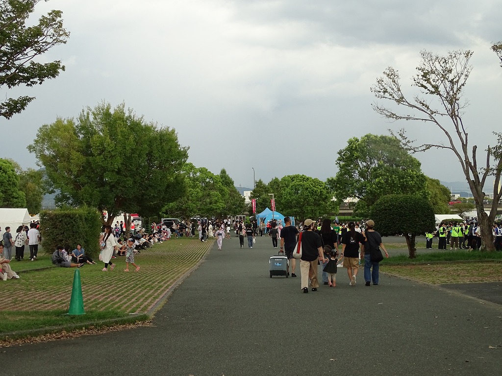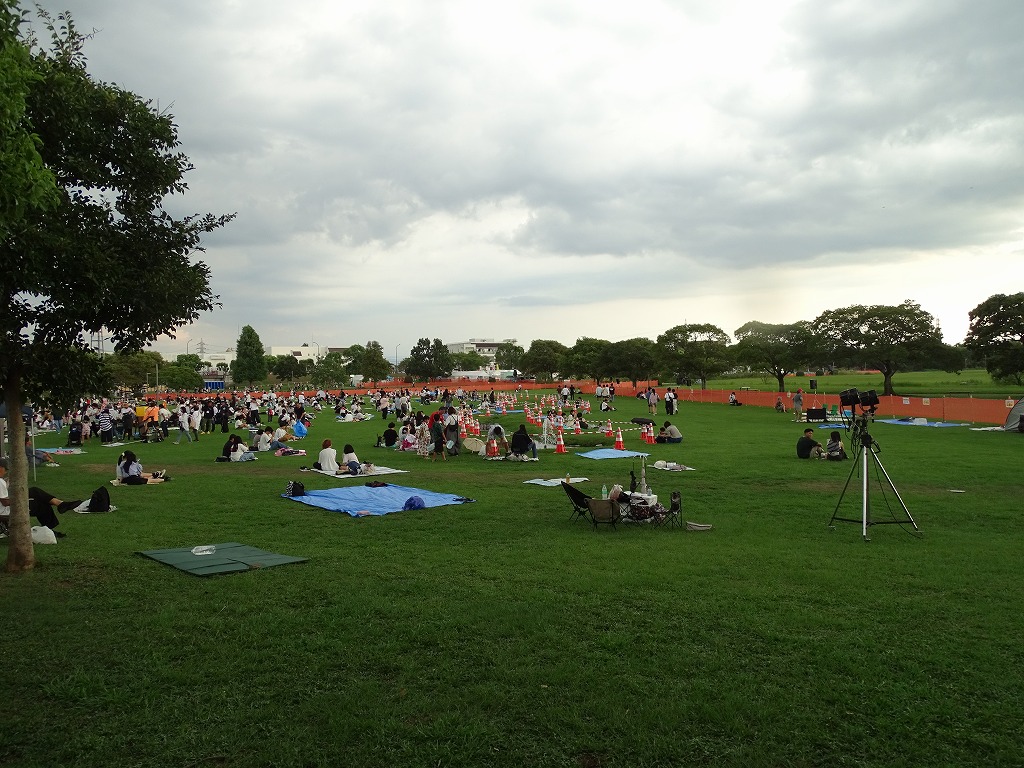予定では19時15分から花火が上がる予定です。17時に撮影した時よりも、人が多くなってきました。江津湖に打ちあがるきれいな花火を楽しんでください。
