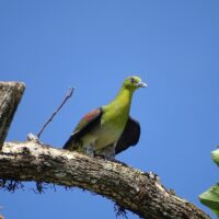 ハトが飛んでいましたので観察してみると、いつも見ているキジバトやカワラバトとは違った、きれいな緑色をしたハトでした。アオバトです。