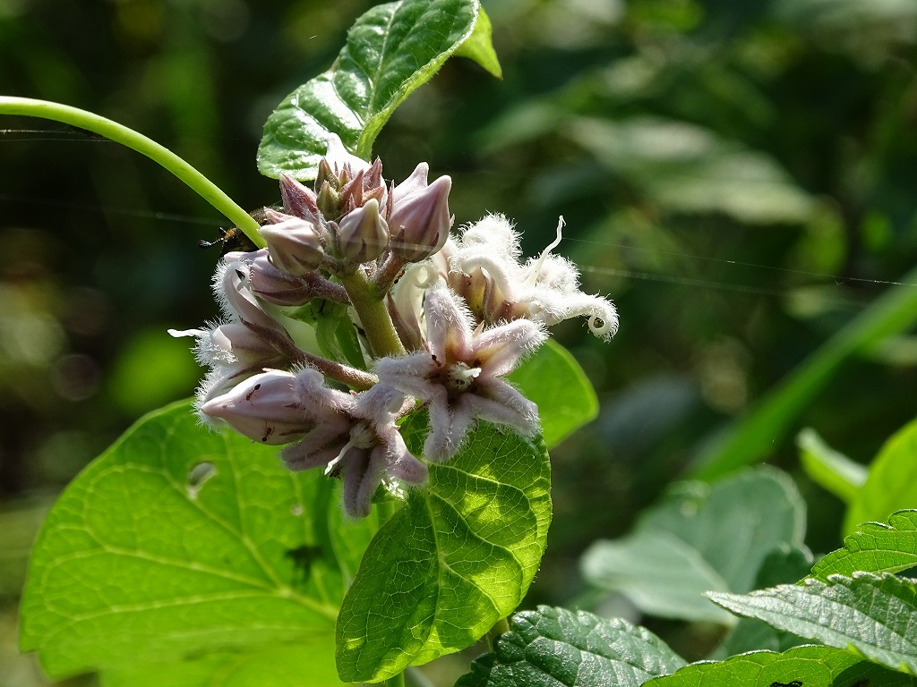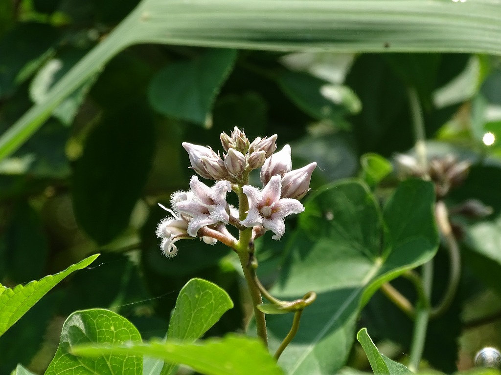 朝晩心なしか涼しく感じられるようになりました。園内では夏から秋にかけて咲く花を見かけるようになりました。その一つ、ガガイモの花が咲いていました。