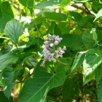ガガイモの花の近くを通るとよい香りがします。花の少ない暑い時期ですので、白い花が目立ちますね。つる性の植物ですので繁茂するイメージですが、ガガイモ自体あまり多くなく、広木地区と上江津地区の一部で少し観察できる程度です。
