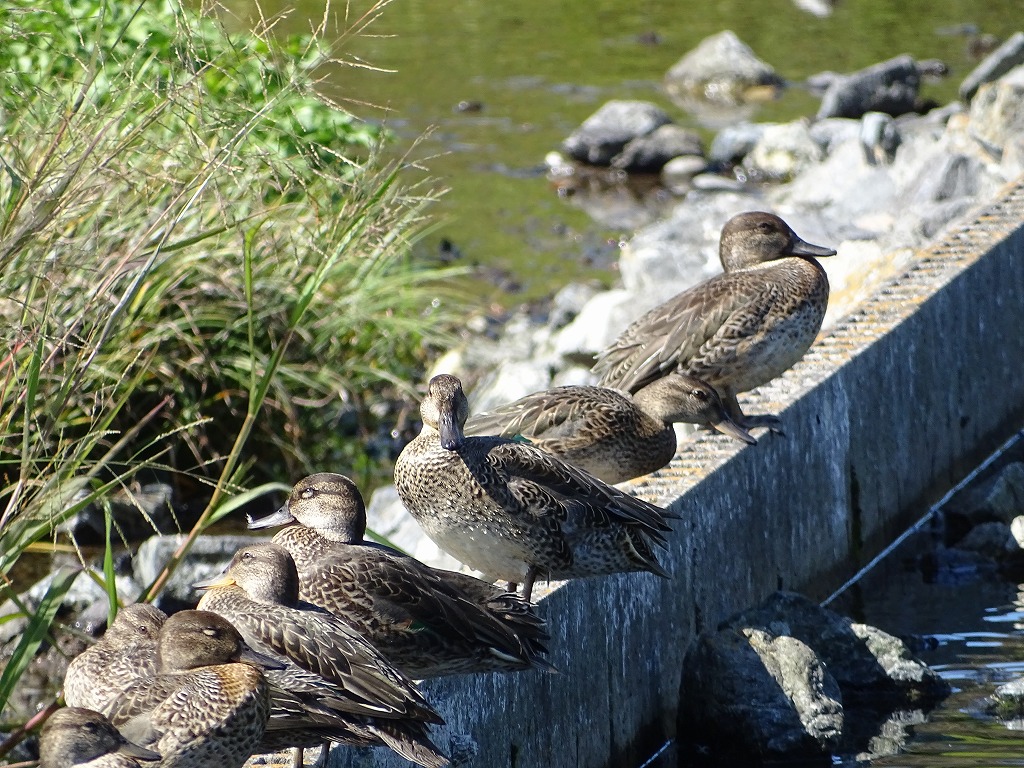 渡り鳥のコガモの数も多くなってきました。今の時期体色がまだはっきりしていません。他の野鳥の種類も増えてきました。