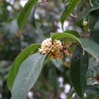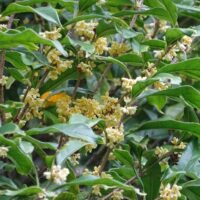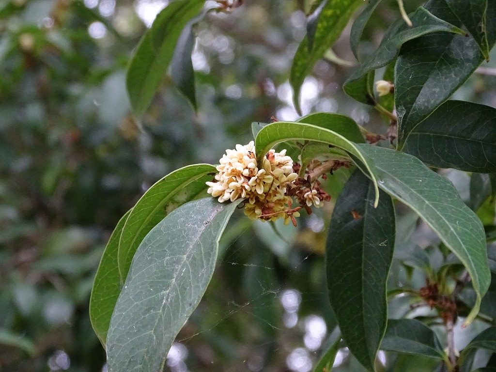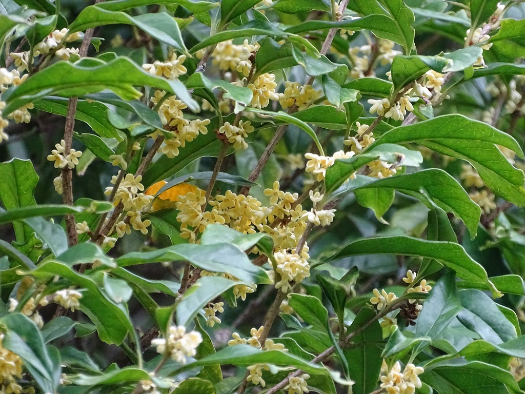 ウスギモクセイは、薄黄色の花を咲かせます。香りはキンモクセイよりも薄いといわれますが、それでも近くを通るとよい香りがします。