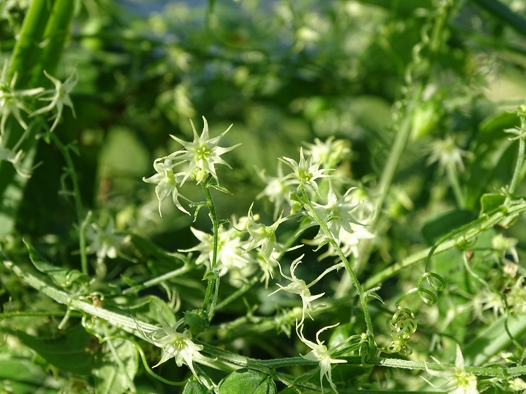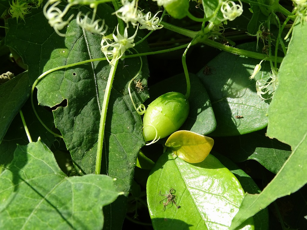 広木地区ではゴキヅル多く見ることができます。花を多く咲かせていますが、白っぽくて地味な花です。