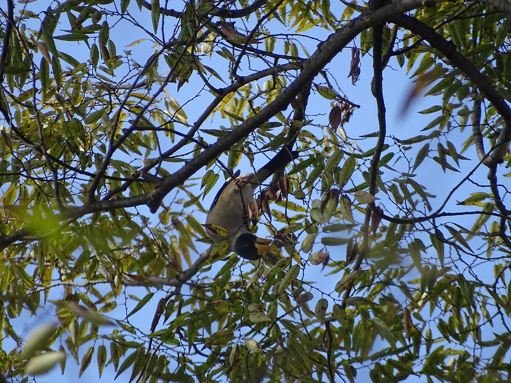 園内でエナガやヤマガラを見かけました。混群で移動している小鳥たちです。