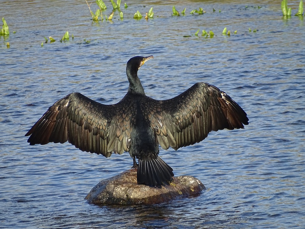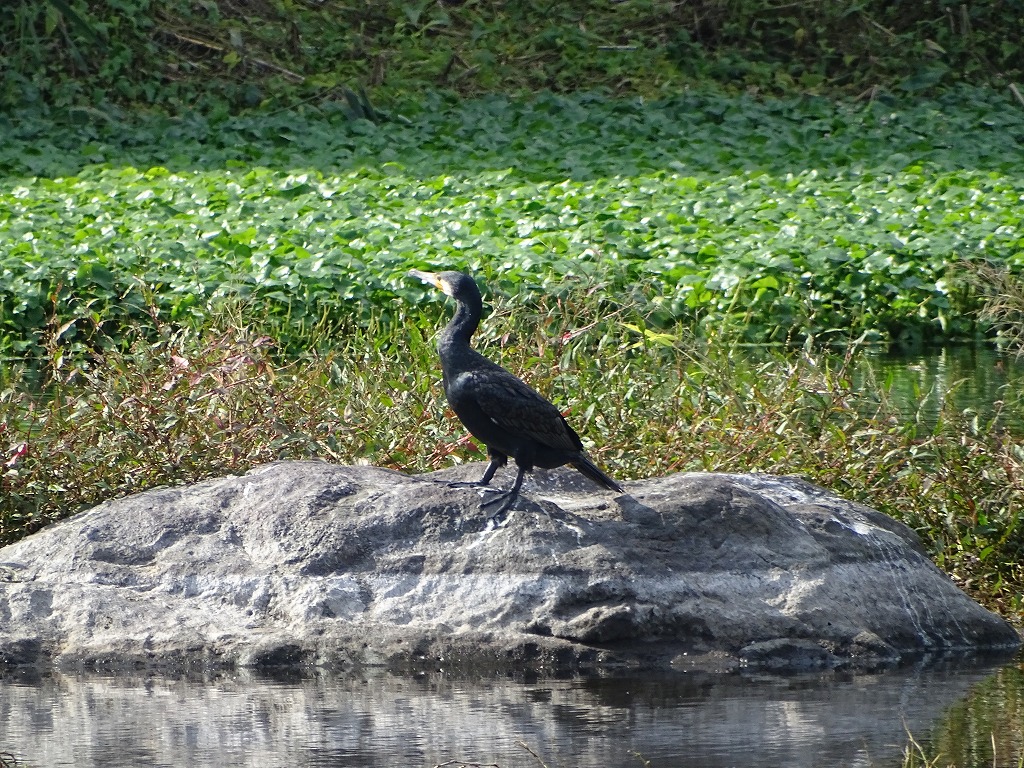 カワウは冬鳥となりますが、江津湖では夏場も少数見かけます。潜ってエサとなる魚を捕まえる姿をよく見かけます。警戒心が強く、人を見るとすぐに水に潜ったり飛んだりして逃げる印象です。