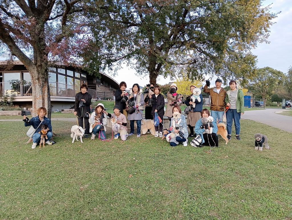 こんにちは、水前寺江津湖公園です。 今日は広木地区で106回目となるえづワン隊を実施しました。15名の隊員と15匹のワンちゃん隊員に集まってもらいました。