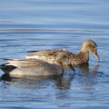 オカヨシガモは一見地味なカモですが、よく見ると羽の模様が細かくてとてもきれいです。江津湖でよく見かけるヒドリガモとは体の色も違いますので、すぐに見つけることができると思います。江津湖では必ず観察できるカモですので、じっくり探してみてください。