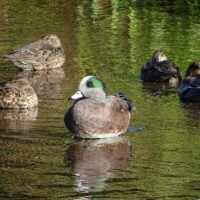 園内でアメリカヒドリを見かけました。江津湖では数の少ない珍しいカモです。