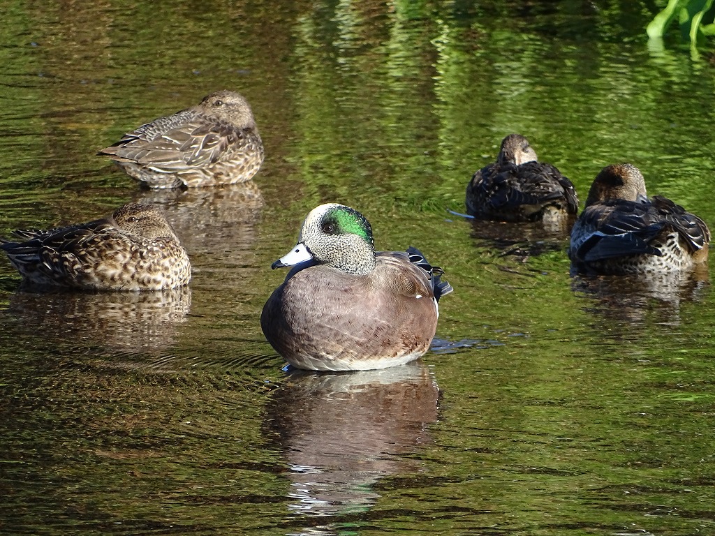 去年は江津湖にあまり滞在してくれず観察できませんでしたが、今季はタイミングよく観察できました。頭が緑色で目立ちますが、江津湖での数はとても少ないです。カモの群れの中をよく探してみると、頭が緑色のアメリカヒドリを見つけることができるかもしれません。