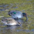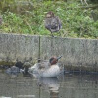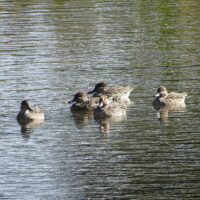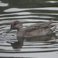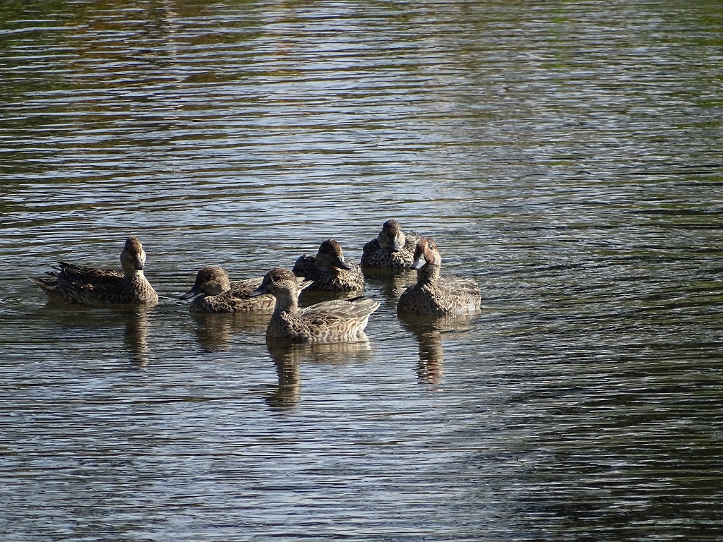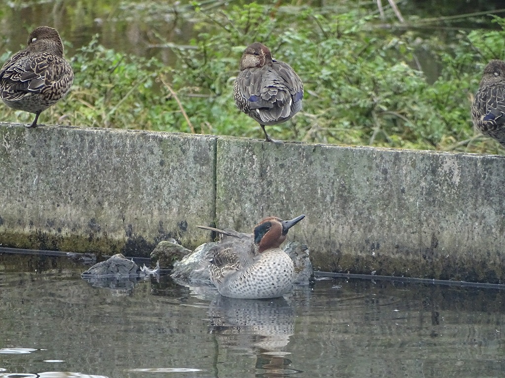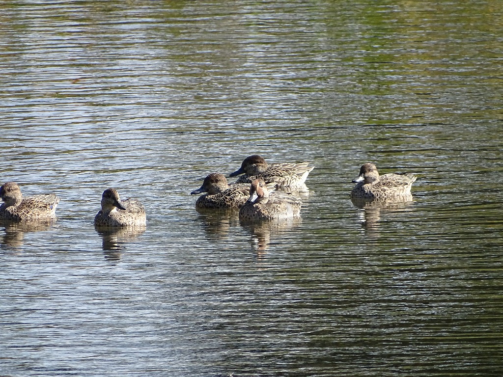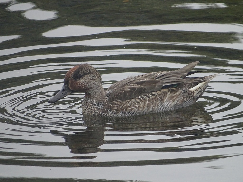 名前の通り、他のカモよりも小さなカモです。オスは、目のまわりが緑色をしていてとてもきれいですが、まだまだきれいな体色はしていません。うっすら緑の頭が見える程度です。もう少し寒くなると頭の緑色がはっきりしてくると思います。コガモは江津湖全域で見かけます。湖面を泳いでいるというよりは、浅い場所に滞在している印象です。岸部付近を探してみると見つかるかもしれません。