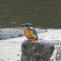 江津湖では上江津湖、下江津湖ともよく見かけますが、上江津湖の方が飛び込んでエサを捕る姿をよく観察できるようです。カメラマンの人たちが多いところは、カワセミがエサを捕る様子をよく観察できるポイントとなっています。