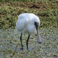 江津湖ではクロツラヘラサギとヘラサギが一緒に滞在しています。よく顔をうずめて寝ていますので、クロツラヘラサギなのかヘラサギなのかよく分かりませんが、両種合わせて10羽ほど確認できました。クロツラヘラサギは世界的にも希少な野鳥です。江津湖での数は少ないですが、希少な野鳥を間近で観察できることは素晴らしいですね。