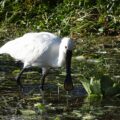 園内でクロツラヘラサギを見かけますが、その中にヘラサギが混ざっています。クロツラヘラサギに似ていますが、クロツラヘラサギは名前の通り顔(つら)が黒く、ヘラサギは顔が黒くないことで見分けることができます。