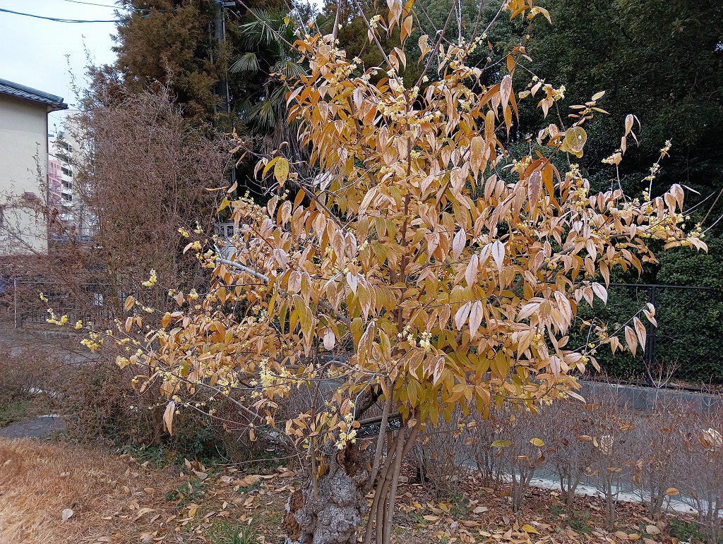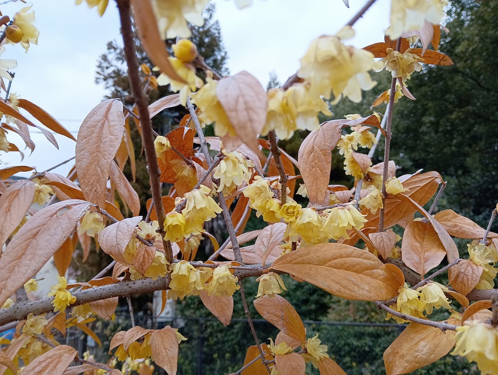 ロウバイは旧水前寺体育館跡地、ジェーンズ邸のすぐそばにあります。ジェーンズ邸の工事期間はロウバイを観察できず、ブログでは久しぶりの紹介です。久しぶりということもあってロウバイ自体を失念しており、気付けば少し見頃が過ぎていたかもしれません。しかしまだまだ花は咲いており、きれいな花と良い香りを楽しむことができます。