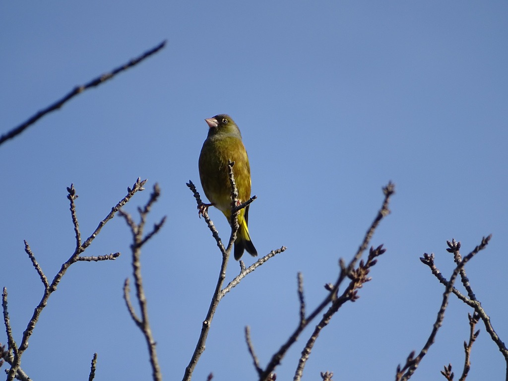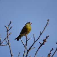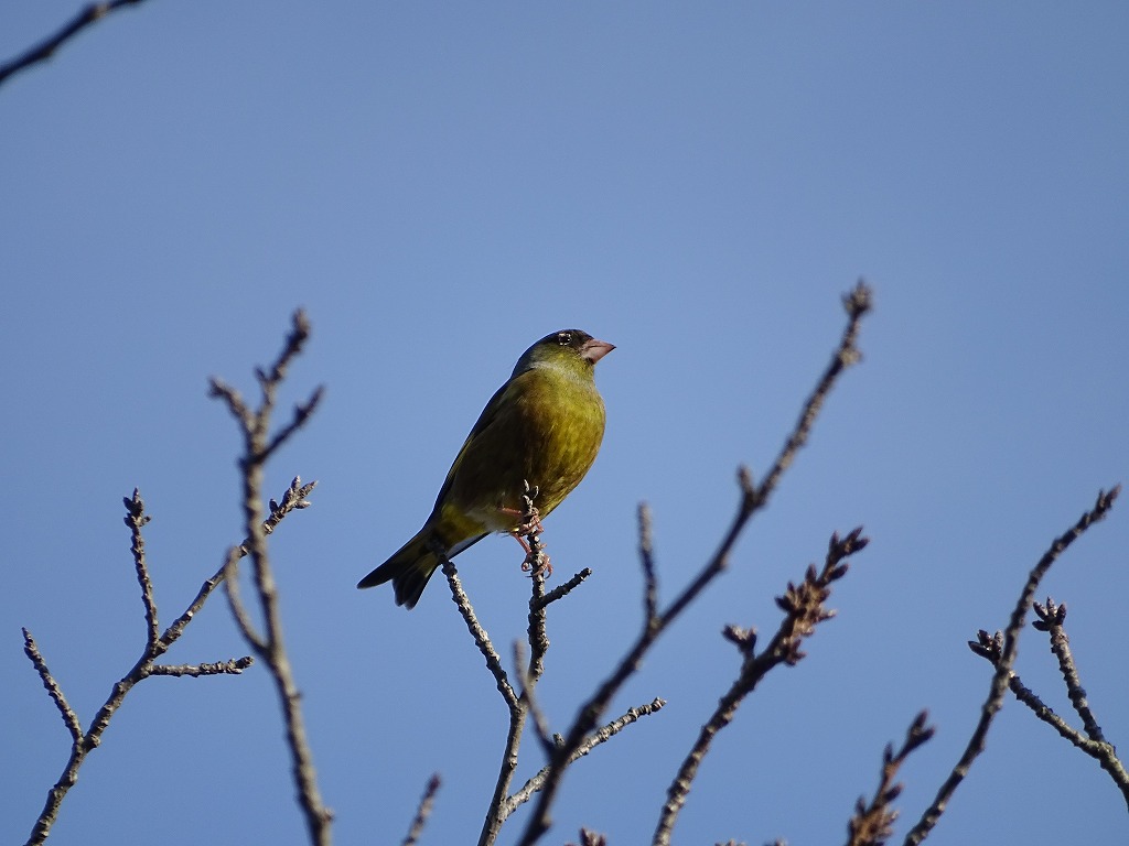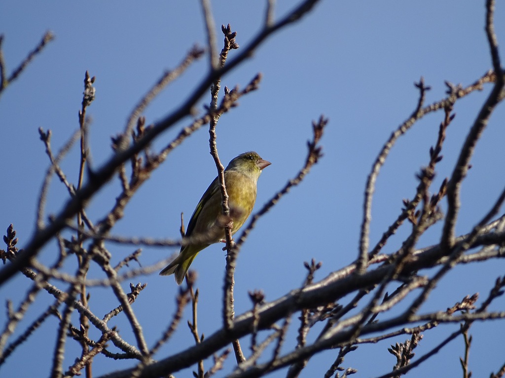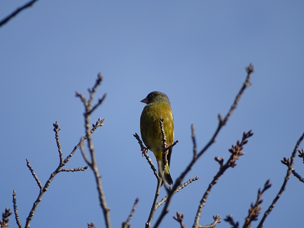よく群れで動き回っているのを見かけます。オリーブ色のきれいな小鳥です。留鳥となっていますので、年中見かける野鳥です。近づきすぎないとじっとしていますので、観察しやすい野鳥ですよ。