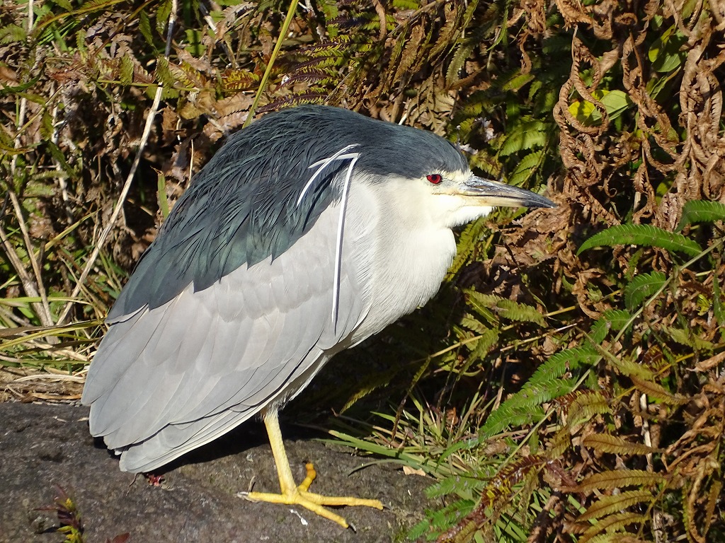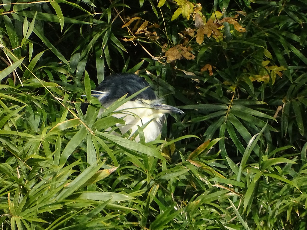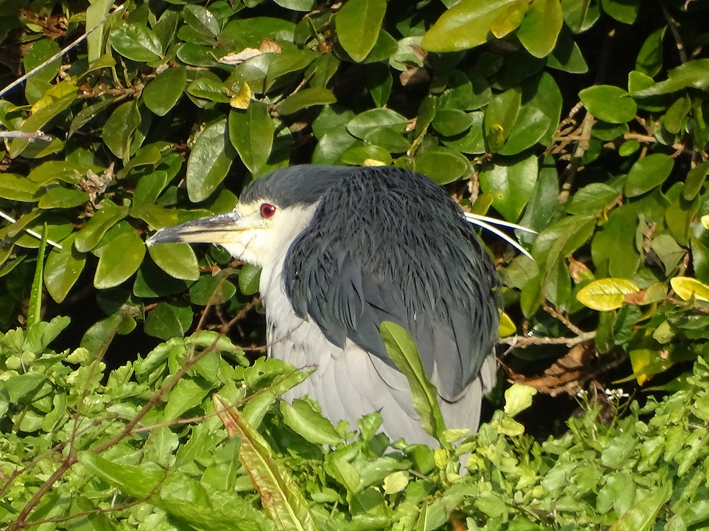 園内でゴイサギを見かけました。サギの仲間で、よく見かける白いスマートなサギとは少し違い、ずんぐりした容姿です。