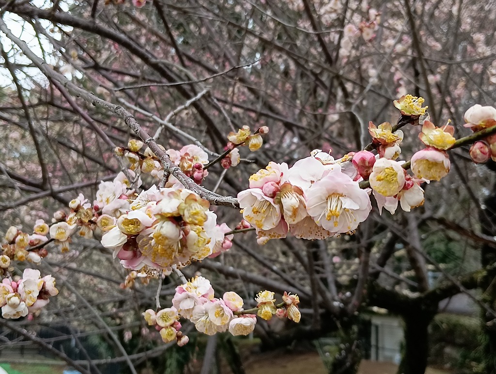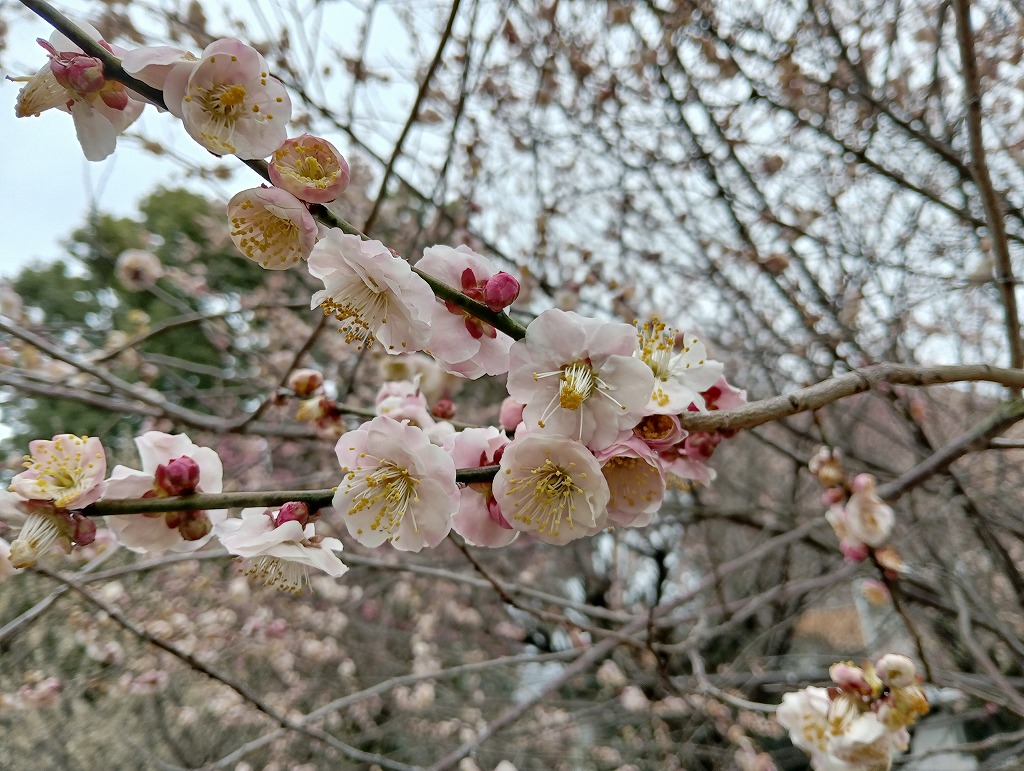 水前寺地区の児童公園では、ウメの花が見頃のようです。