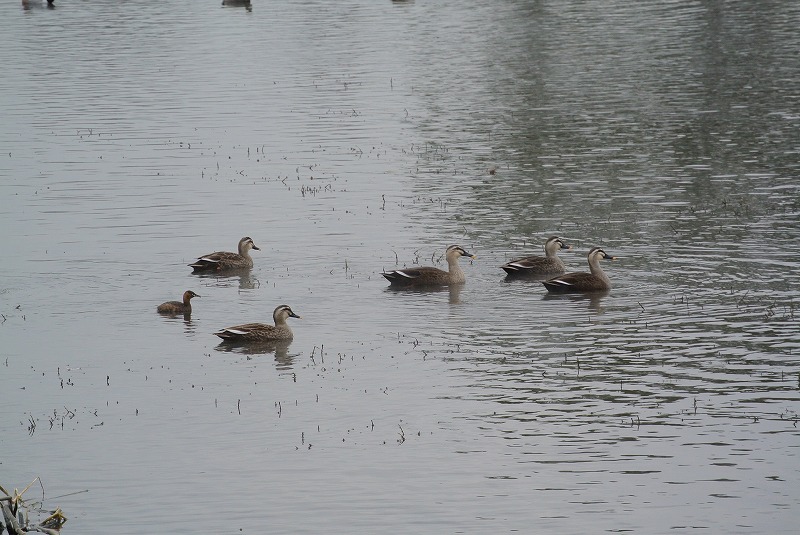 カルガモです。上江津地区にて。(注:左の小さい鳥はカイツブリです)