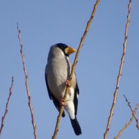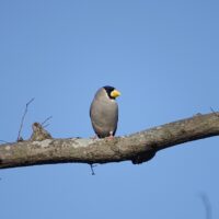 大きい口ばしが特徴的な野鳥です。大きな口ばしでエノキなどの硬い実もかみ砕きます。鳴き声がとてもきれいで、人が口笛を吹いたような鳴き声をします。鳴き声を聞けば、すぐにイカルがそばにいることに気づくと思います。