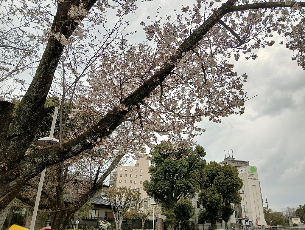 水前寺地区児童公園のサクラは急に7部咲ほどになりました。この場所が、例年江津湖では一番最初に咲き始めます。今季は咲き始めが遅かったのですが、咲き始めると満開近くになるのが早いですね。他の場所では、おおよそ2部咲ほどでしょうか。見頃はもう少し先のようですが、暖かさが続くと、すぐに見頃となる場所もあるかもしれません。