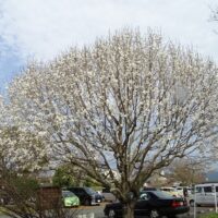 コブシはハクモクレンと似ていて、ハクモクレンの花弁は9枚、コブシの花弁は6枚であることで区別できます。花期も短いので、早めの観察がいいと思います。