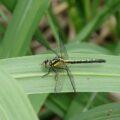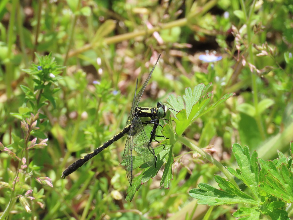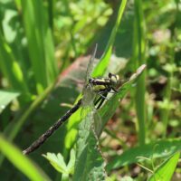サナエトンボの仲間で、その中では小型のトンボです。熊本県では希少種になっており、春から初夏の頃だけに見ることのできるトンボです。江津湖での数もそれほど多くなく、夏にはほとんど姿を見かけなくなり、意識して探さないとなかなか観察することが難しいかもしれません。