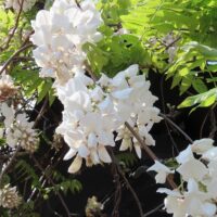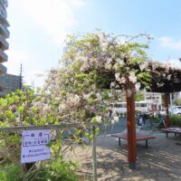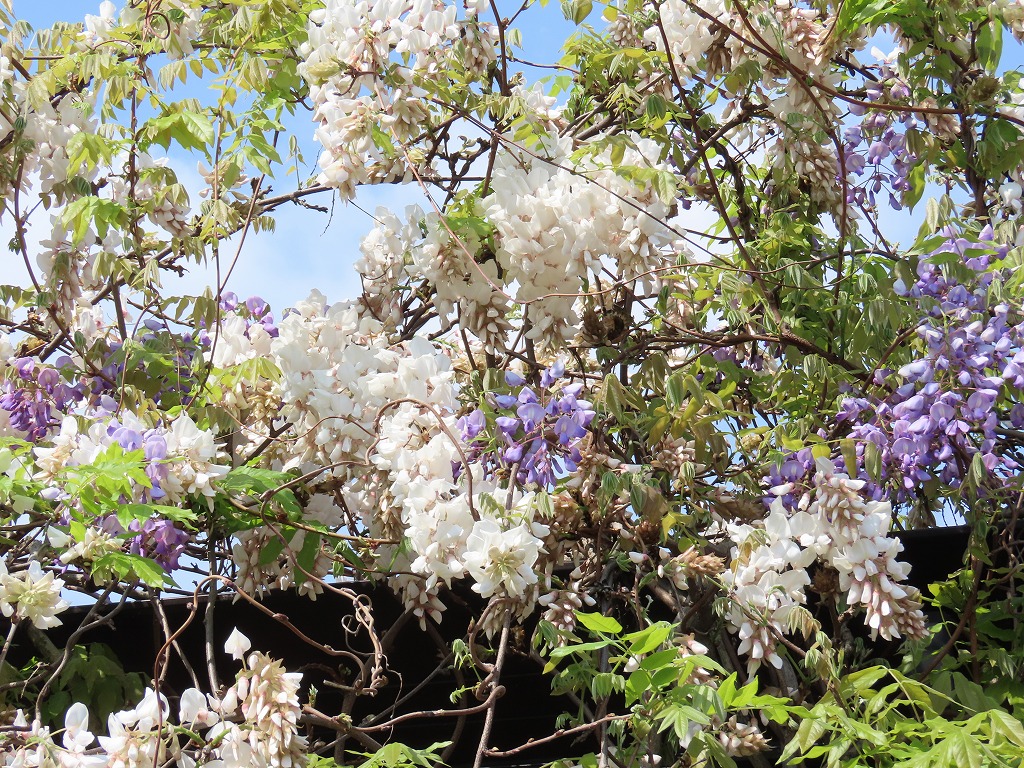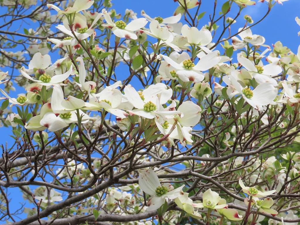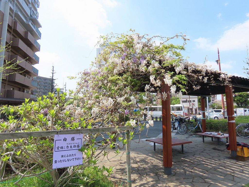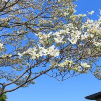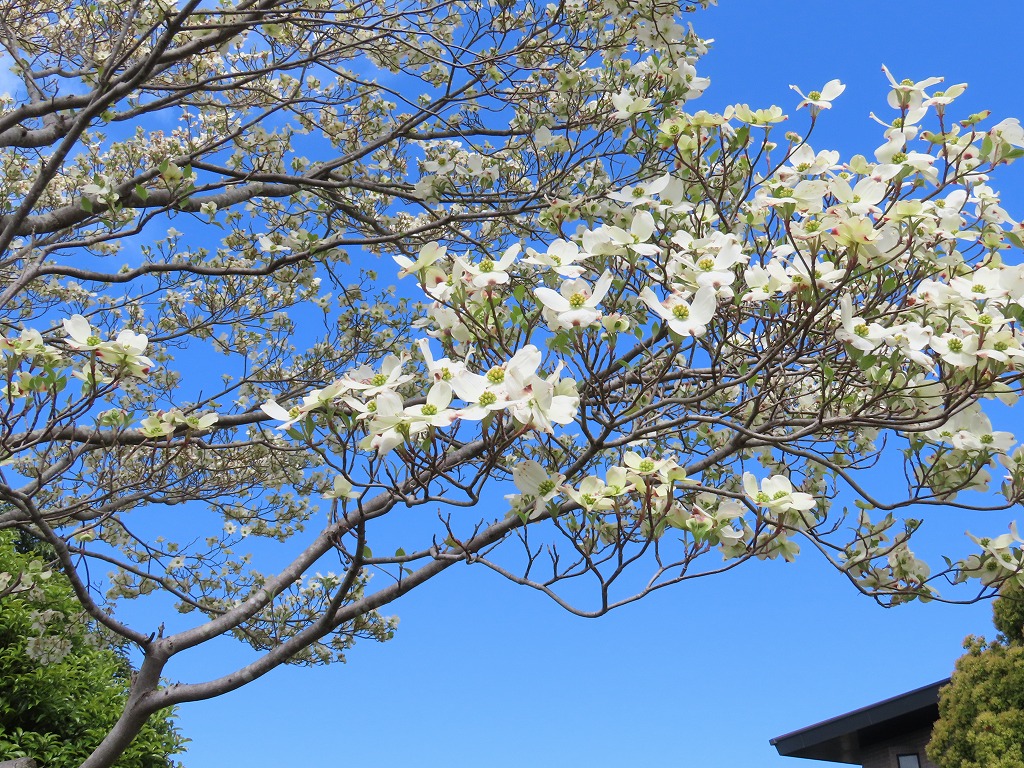 このフジの花は、「力太郎藤」と名付けられています。地域住民に愛されているのでしょうね。近くを通るととてもいい香りがします。白い花がとてもきれいですね。 他にもハナミズキやドウダンツツジの花が咲き始めています。