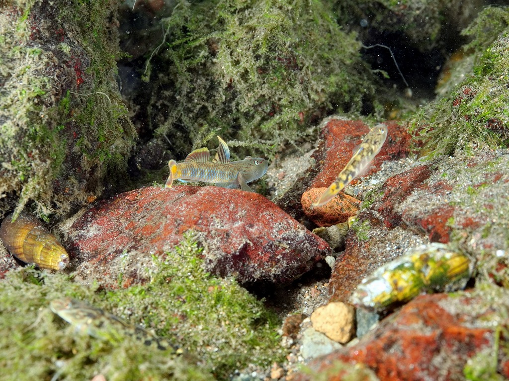 魚たちの水中で泳いでいる姿は、なかなか写真で見ることはありません。こうして紹介できることがうれしいですね。カワモズクの仲間には珍しい種もあります。水の中ですので実際にはなかなか確認できません。写真で見れることはすごいことですね。