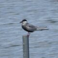 こんにちは、水前寺江津湖公園です。 下江津湖でクロハラアジサシを見かけました。江津湖では旅鳥として春や秋に観察できる野鳥です。湖面上を飛び回りながらエサを探しています。見つけたら湖面にダイブして捕まえます。よく鉄柱の上で休憩しているところを見かけます。ここがお気に入りの場所になっているのかもしれません。