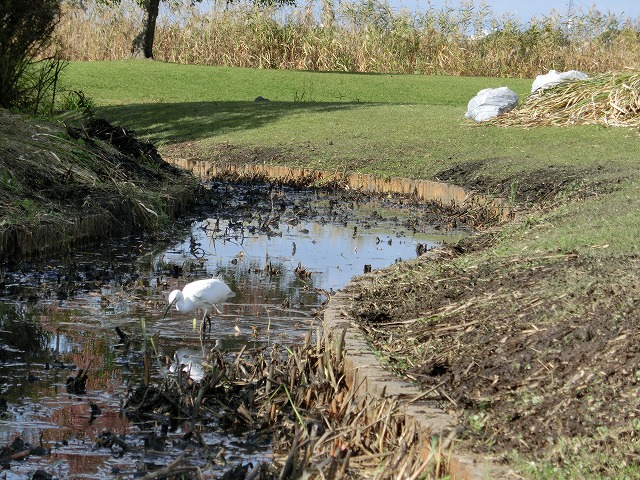 おかげさまで、水面が見えるようになった水路には、さっそくのお客さん(コサギくん)が遊びにきてくれました~♪