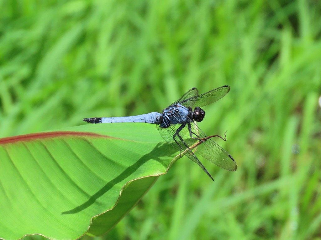 雨の合間に園内を歩いてみると、トンボが多く飛んでいるのを目にします。その中でオオシオカラトンボを見かけるようになりました。