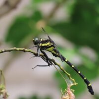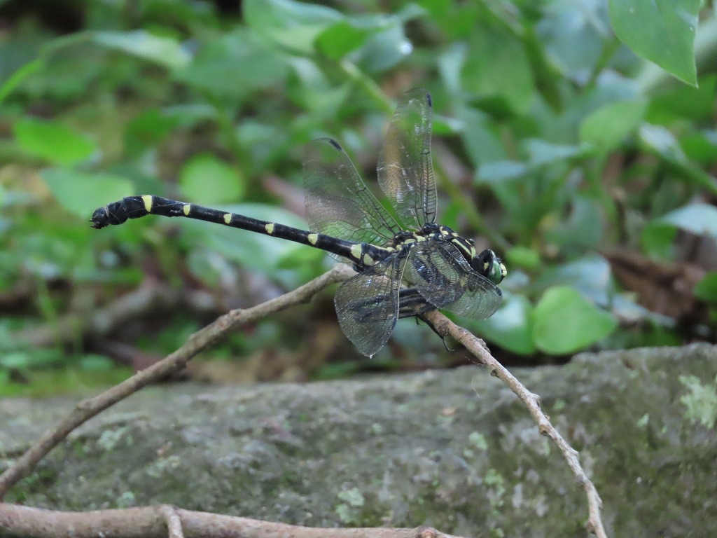 コオニヤンマは大型のサナエトンボの仲間です。体がとても大きいので、オニヤンマと間違えそうです。オニヤンマに似ていることから名前が付けられていますので、間違えても不思議ではありません。枝や地面に降り立つように止まることで見分けがつきます(オニヤンマは枝などにぶら下がってとまります)。同じ場所でじっとしているのをよく見かけます。とても観察しやすいトンボですよ。
