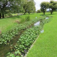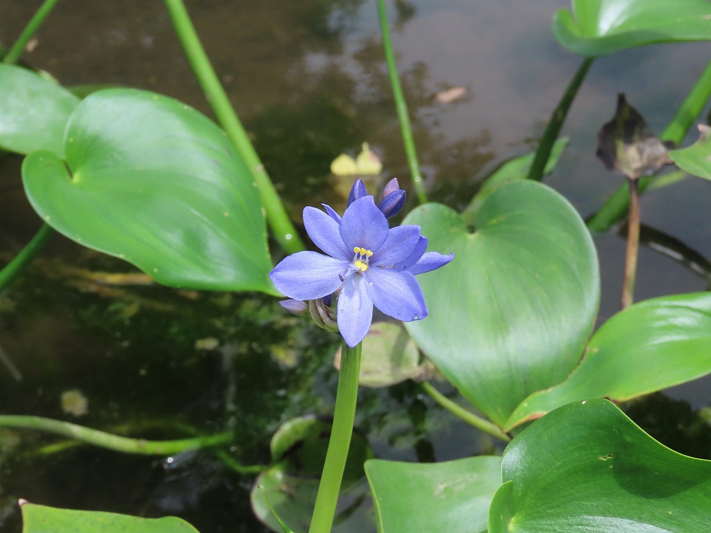 園内のミズアオイは、今季も元気に生育しています。少し早いですが、花が咲き始めている個体もあります。