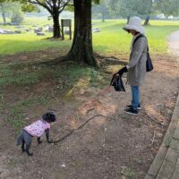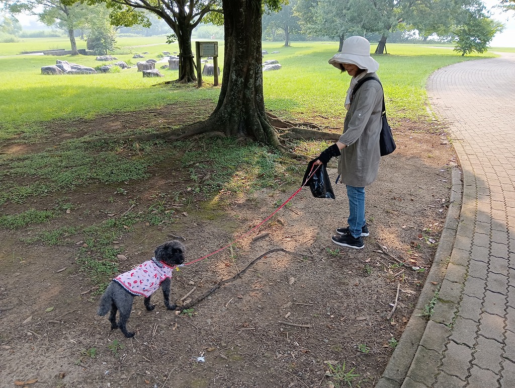夕方でもまだまだ暑いです。今日は時間を短縮して、日陰を移動することでの開催としました。公園にお散歩に来られる方は、自分自身だけでなくワンちゃんの熱中症などにも気を付けながらお散歩してください。 来月も17時から開催を予定しています。8月もまだまだ暑いと思います。無理のない参加でよろしくお願いします。