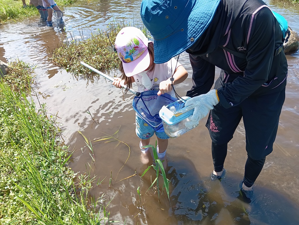 ヌマエビの仲間やアメリカザリガニ、魚ではドンコや外来種のティラピアの仲間などを観察できました。実際に水に入って観察してみると楽しいですね。外来種についても知ってもらえてよかったと思います。