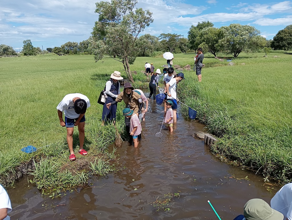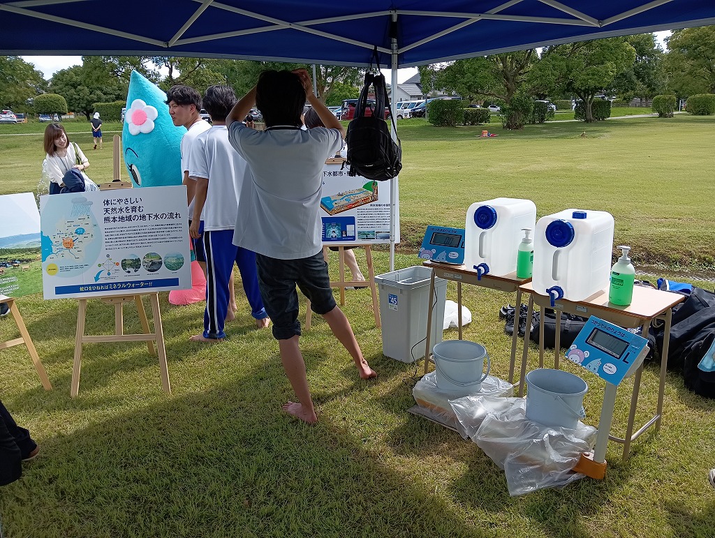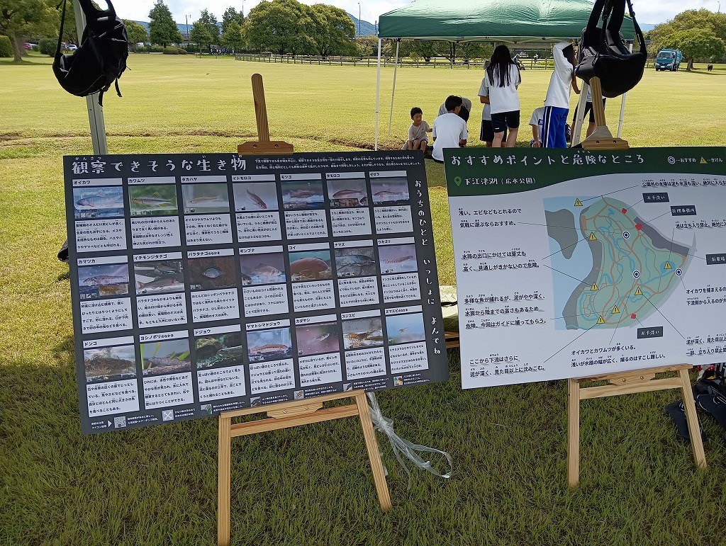 こんにちは、水前寺江津湖公園です。 今日中央高校の皆さんが、「~熊本中央高校自由研究お手伝い企画~“水と魚”」というイベントを実施されました。中央高校の学生たちが主体となって、いろいろなワークショップを展開し、熊本の“水”について参加者に体験・学習していただくイベントです。パネル展示や水の生きもの観察会などを実施されました。