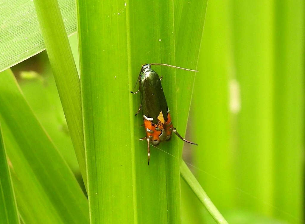 ガの仲間はしっかり探せば見つけることができると思います。きれいなガも多いです。カミキリムシの仲間も探せばいろいろいますね。トンボやチョウがいないときは、他の種類の昆虫たちを探してみるのもおもしろいかもしれません。