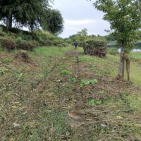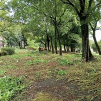 昨日までの大雨で、江津湖も大部分が冠水しました。今日水も引き、雨も落ち着いたため園内点検を行ったところ、増水した部分には大量の漂着ゴミが散乱していました。