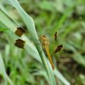 ミヤマアカネは最も美しい赤トンボと言われています。まだその面影はありませんが、秋らしい気候となるころには、真っ赤に色づいた姿を見せてくれると思います♪
